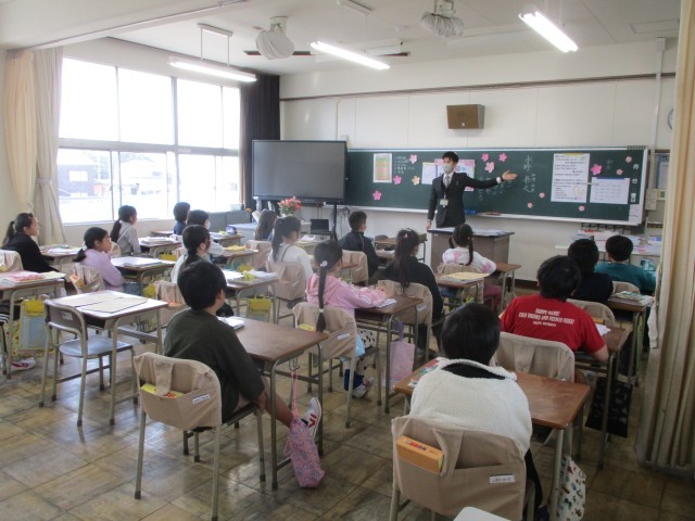 新しい担任の先生とすてきな出会いをしていました。明日からも楽しみですね。