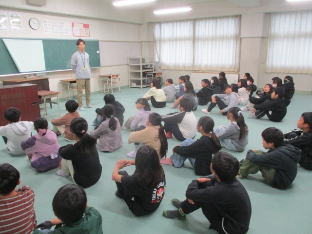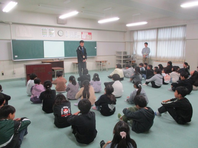 5年生2クラス集まって学年集会が開かれました。今年度、授業を教えてもらう先生たちの話も聞きました。静かに、しっかりと先生方の話を聞くことができていて高学年としてすばらしい姿でした。