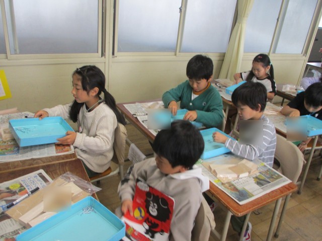図工の「トントンどんどんくぎうって」。かなづちを使ってくぎ打ちに挑戦します。
