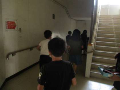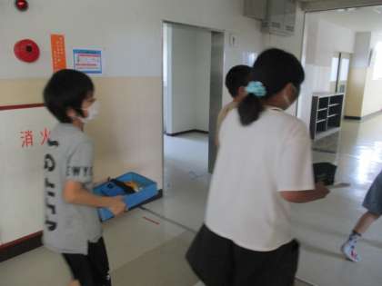 理科の先生の話をよく聞き、用具をもってさっそく理科室に移動していました。