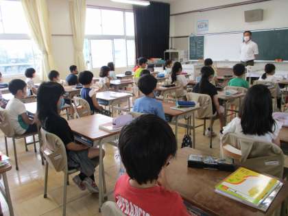 今日は初めての社会でした。先生の話をしっかり聞きながら、丁寧に黒板の字をノートに書く姿が見られました。