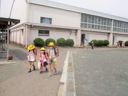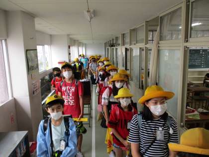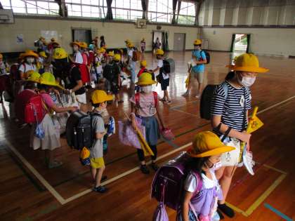 雨降り下校についても、3密を避けて下校できるように練習を行いました。班長が体育館に移動し、1年生に優しく声をかけながら下校することができました。並ぶ場所をそっと教えたり、くつをはくのを見守ったりするなど、下級生を思いやる姿が輝いていました。