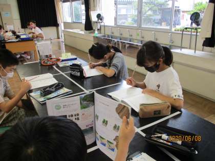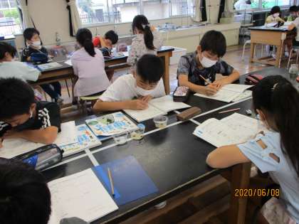 理科の授業の様子です。 成長に日光が必要かどうかを条件を変えて調べました。