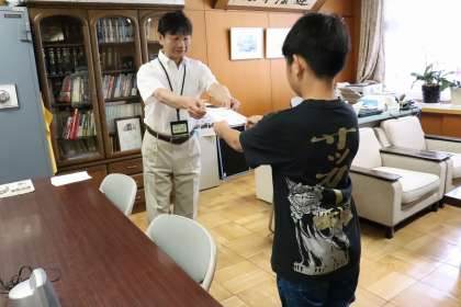 慣れない校長室の中でしたが、児童会としてふさわしい堂々とした態度で望むことができました。