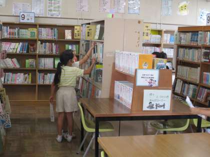 図書館の本の並び方を復習しました。「うらしまたろう」の本や「ナスの育て方が書いてある本」などがどこにあるか友達と一緒に探しました。図書館の地図を持ち帰ったので、子どもたちに話を聞いてみてください。