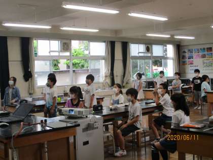 今日の理科の授業の様子です。一列ごとに、今日の授業で大切なキーワードを繰り返しとなえながら学習を行っていました。仲間の発表も意欲的に聞き、大変楽しそうに授業を受けていました。
