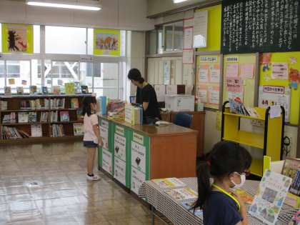 初めて、図書館へ行きました。本を読む前に手を洗うことや、距離をあけて並ぶことなどを司書の先生に教えてもらいました。みんなは、多くの本から自分の好きな本を選び、嬉しそうでした。来週の金曜日には、本を返し新しい本をまた借りる予定です。