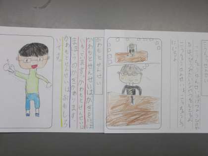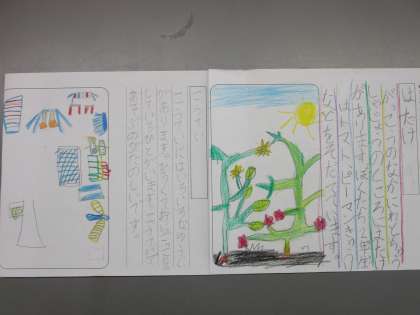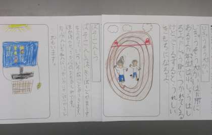 毎年、1年生に学校の案内をしますが、今年はコロナの影響で行うことができませんでした。そのため、1年生に学校のいいところを紹介する文章と絵をかきました。