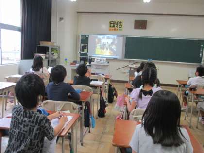 朝はZOOM朝礼による役員任命式がありました。4年生の学級委員と学級議員が校長室で任命され、教室で待つ児童たちはスクリーンを見ながら大きな拍手で気持ちを届けていました。