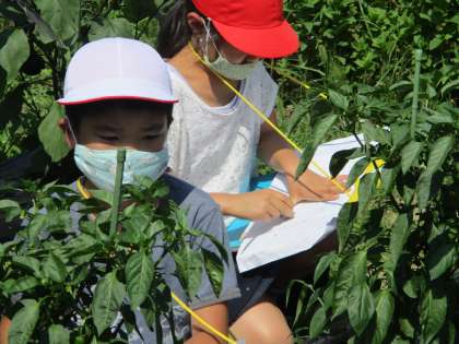 国語の「かんさつ名人になろう」で、視点を決めて観察するという学習を行いました。色、形、大きさ、におい、手触りなど五感を使って詳しく観察し、メモをとりました。次回はこのメモをもとに観察カードを書きます。