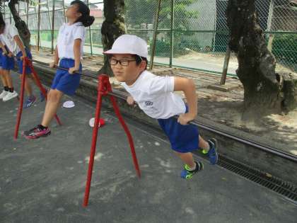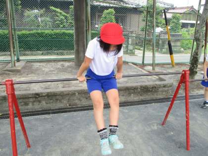 体育では鉄棒の練習を行っています。様々な上り技・回り技・下り技に挑戦しているところです。上級技・中級技・初級技に分かれて取り組んでみたり、技を組み合わせたりして、少しでもできる技が増えるよう一生懸命頑張っています。