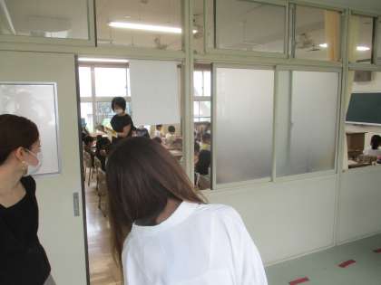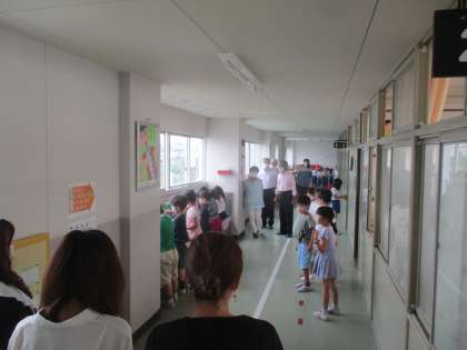 委員の方々に休み時間の様子、手洗いの様子、授業の様子を参観していただきました。