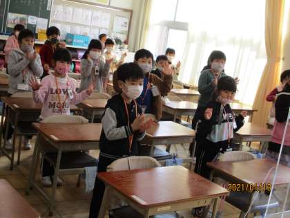 今日は、体調を表す言葉やあっち向いてホイの勉強をしました。じゃんけんも英語で行い、からだを動かしながら楽しく勉強することができました。