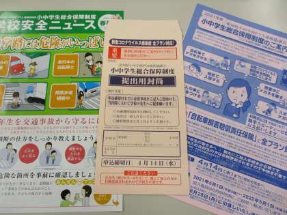 入学式と始業式に「小中学生総合保障制度」の申し込み用の封筒を配付しました。