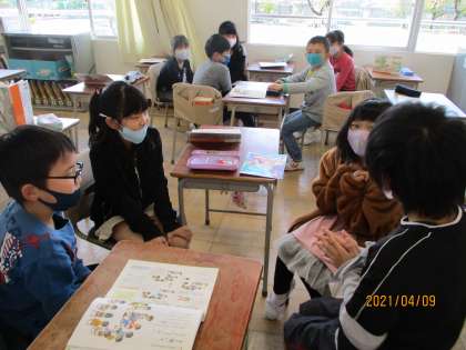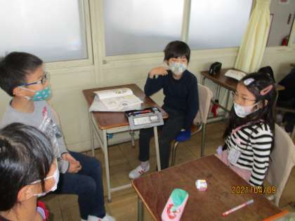 国語の授業で「よく聞いて、じこしょうかい」を行いました。前の人の話を繰り返してから自分のことを話します。みんなで楽しく自己紹介ができました。