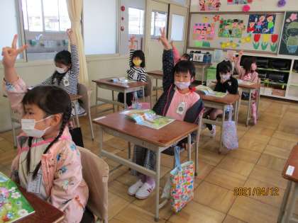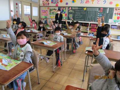 授業が始まり、子ども達は教科書の折り目を丁寧につけながら、新しい教科書を大事そうに開いていました。分かった時にはぴんっと手をあげて答えることができます。やる気満々の一年生の様子が見られ、嬉しく思いました。