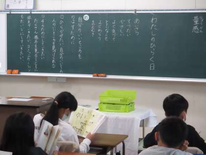 4年生の道徳科の授業では、「自分のいいところをのばすために」というテーマで、自分のいいところを出し合いました。あいさつ、やさしさ、よくわらうこと、前むきなところ、よく気づくところなど。これからも一人ひとりの自己肯定感を高めていきたいと思います。また、クラスの仲間のいいところもいっぱい見つけていきましょう。