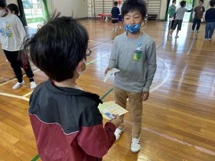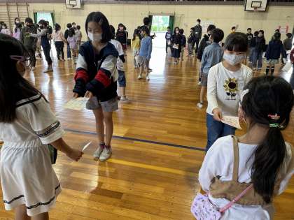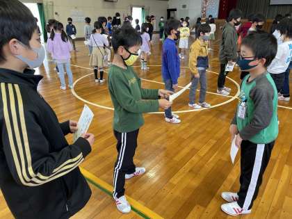 ペア結成式がありました。「よろしくね」、「たくさん話そうね」など