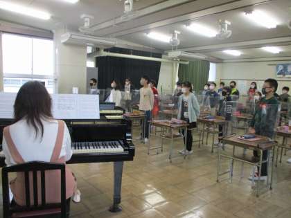 校歌や「翼をください」を歌いました。次の授業も楽しみですね。