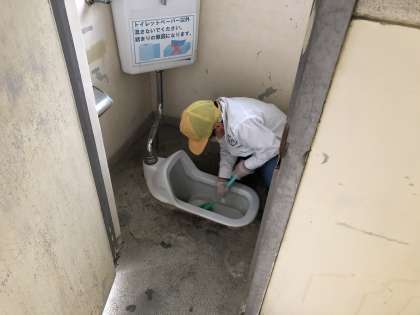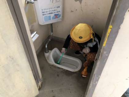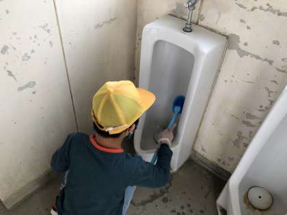 外トイレの掃除の様子です。時間いっぱい一生懸命に取り組んでいます。