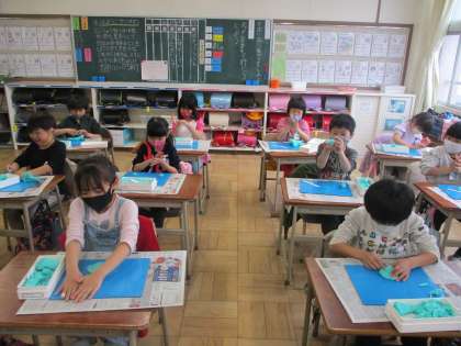 本日は2年生になって初めての図工の授業でした。子どもたちは自分のつくりたい好きなものを、思い思いに粘土で表現していました。ひねったりのばしたりするなど、様々な工夫をしていました。