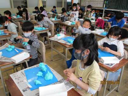 4月16日 2年生 図工「にぎにぎ ねん土」