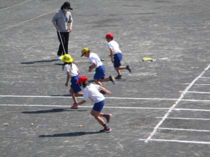 3年生の体育では、体力テストに向けて50m走の練習をしました。本番で力を出し切れるよう、しっかり練習をすることで体力づくり、けがの防止につながります。