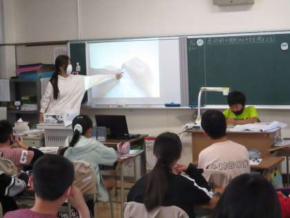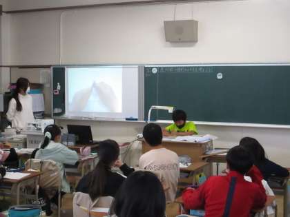 6年生の算数では、点対称の図形をどのようにかくのか学習しました。学級の仲間の考え方をしっかり聞いて、自分の考えを述べること、カメラを使って分かりやすく説明をすること、さすが6年生だと感じます。