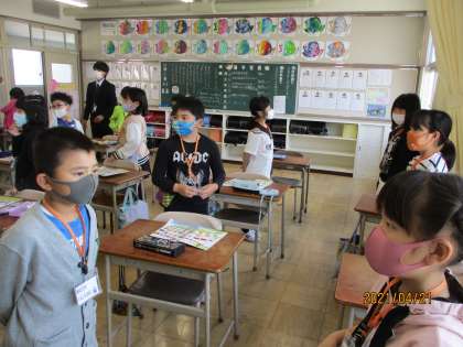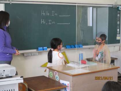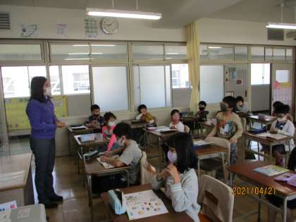 3年生から英語の授業があります。今日はいろいろな国の名前や挨拶について勉強しました。ALTの先生や学習チューターの先生もみえて、楽しく学習できました。