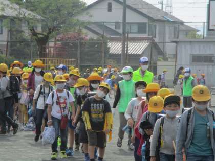 今日の一斉下校は、見守り隊の方に来ていただきました。
