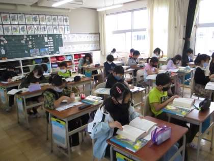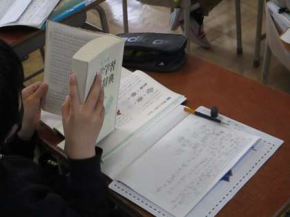 5年生の国語では、漢字の成り立ちについて辞典を使って調べました。自分の名前に関わる漢字については、特に興味をもって調べていました。