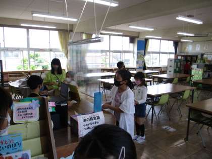 中間放課、子供たちが待ちに待った図書館が開館しました。うれしそうに本を借りに来た子、お世話をする委員会の子、これからはこんな光景が続くと思います。いっぱい本を読んでほしいと願っています。