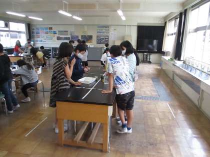6年生の理科では、ものが燃える前と後の空気には、どのようなちがいがあるか実験を通して調べました。気体検知管を使って酸素と二酸化炭素の濃度を各班で測定し、黒板にまとめました。子どもたちは協力して生き生きと学習をしていました。