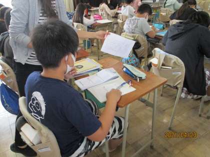 単元のまとめに入りました。問題を丁寧に解きながら、線対称や点対称な図形について学習したことを確認しました。来週にはテストもあります。がんばろう!