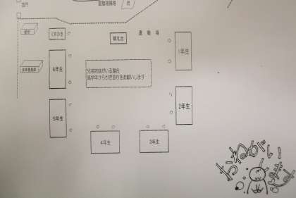 ・児童は運動場の各学年の決められた位置で待機します。担任教師が引き渡しの確認をしますので、必ずチェックを受けてから下校してください。