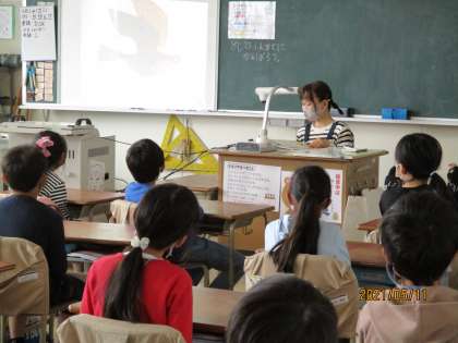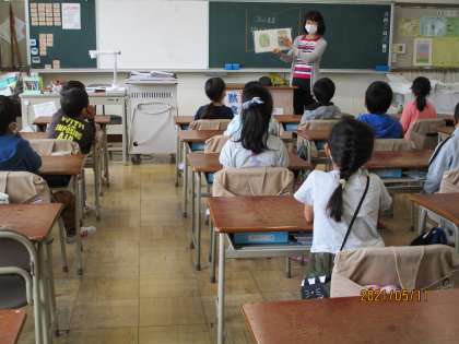 本日の朝の時間に、ぶっくままによる読み聞かせが行われました。子どもたちは集中してよい姿勢で読み聞かせを聞くことができ、楽しむことができました。