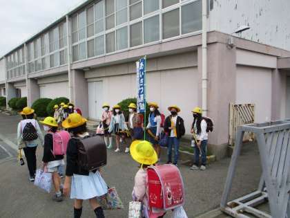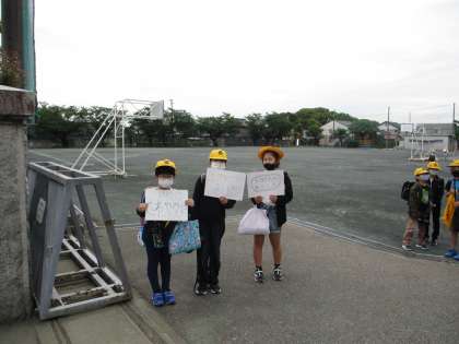 あいさつ運動2日目、東門に立っている子たちも大いに盛り上げてくれました。東門から入る子も顔を上げて元気よくあいさつができました。