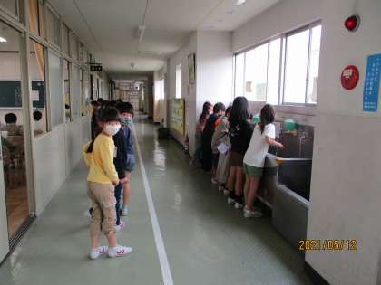 朝の学習タイム前には、学年全員が手洗いをし、新型コロナウイルスの感染予防に努めています。