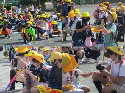 下校する前にお茶を飲み、元気にあいさつをして帰りました。