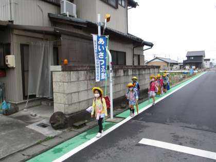 あいさつ運動が4日目になりました。集合場所やその近くでも、保護者や地域の方に見守りをしていただいています。感謝の気持ちを込めてあいさつをこれからもしていきましょう。1列にしっかり並んで、低学年特に1年生の子たちの速度に合わせて歩いています。立派です。みんなをまとめている班長さんも日々ご苦労様です。