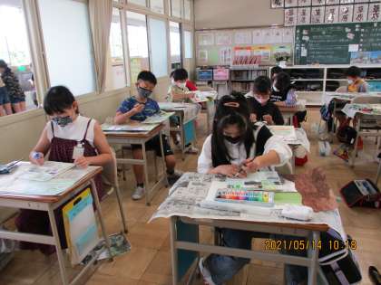 細かいところまで、色を変えながら丁寧に塗る姿が見られます。