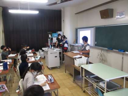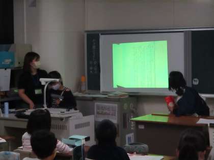 4年生の国語では、町の住人になりきって町やまわりの様子を紹介する文章を書いて、発表しました。ノートにきちんと書けているので、書画カメラで写しながら発表がしっかりできました。