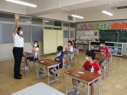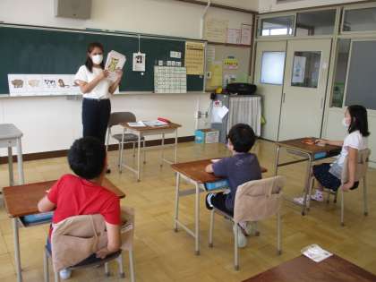 英語の授業がありました。今日のテーマは動物です。動物の名前を確認したあと、クイズに挑戦しました。鳴き声を聞いて、動物の名前を当てます。大人の耳では聞き分けられない鳴き声も、動物が大好きなくすのきのみんなは当てることができて、ALTの先生も驚いていました。