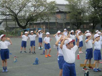 本日、ダンスの練習を行いました。1組の児童にとっては初めて実際に踊る練習になりましたが、しっかりと先生のお手本を見て、踊ることができました。非常に子どもたちは楽しそうな表情で練習に臨んでいました。新型コロナウイルス感染症対策も行いながら、練習を重ね、より上手になっていきたいです。
