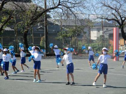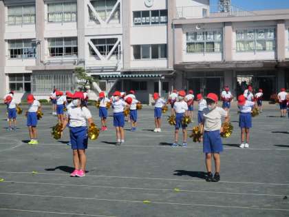 今日は、ポンポンをつけて、3・4年生合同でダンスの練習をしました。朝礼台から見ると、4色のポンポンが鮮やかでとてもきれいでした。動きもきびきびしてきました。