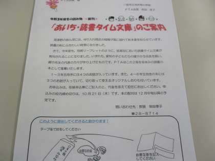 「あいち・読書タイム文庫」のご案内を10月8日に配付しました。