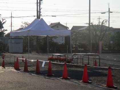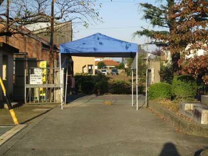 受付は、西門と東門(駐車場の方です)の青いテントの下です。
