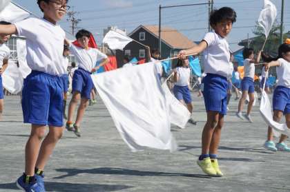 初めての旗や集団行動で難しい技が多く、不安な気持ちになったときもあったと思います。そんな中、放課に友達と一緒に振りを確認したり、給食の時間に練習で踊ったビデオを見たりしながら気持ちを高めてきました。
