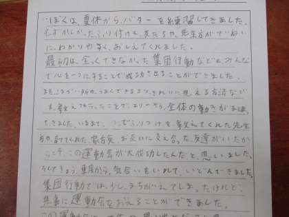 5時間目に運動会の振り返りを書きました。学んだことは「あきらめないこと」「挑戦することの大切さ」「一人一人の力が団結力につながる」など素敵な言葉を書いていました。また、いろいろな人への感謝の言葉も書かれていました。この経験が成長につながると思います。これは一つの通過点。次のステージにレベルアップしていきましょう。