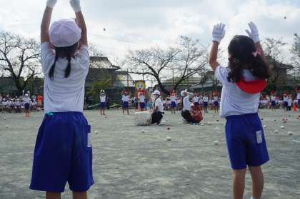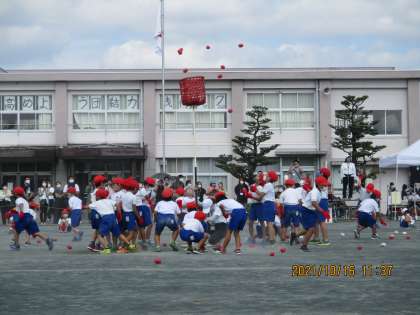 本日の運動会の玉入れの様子です。